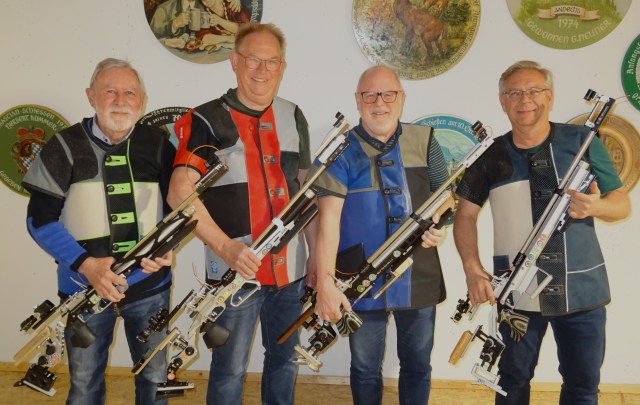 Als die Mannschaft vor vier Jahren angemeldet wurde war das langfristiges Ziel die Gauliga zu erreichen. Nach dem Start in der B-Gruppe in der Saison 2022/2023 folgte im Jahr darauf der Aufstieg in die A-Gruppe und in der Saison 2024/2025 der erhoffte Aufstieg in die Gauliga wo dann überraschend der 2. Platz erreicht wurde. In der aktuell abgeschlossen Tabelle für 2025/2026 belegten die Schützen (im Bild von links nach rechts) Peter Kößler, Manfred Söhnel, Volker Drexler und Fritz Topitsch nun den 1. Platz mit einem Durchschnitt von 940,95 Ringen und 18:2 Punkten.